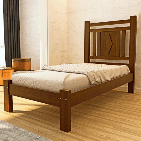 - Cama de solteiro 100% em madeira maciça;